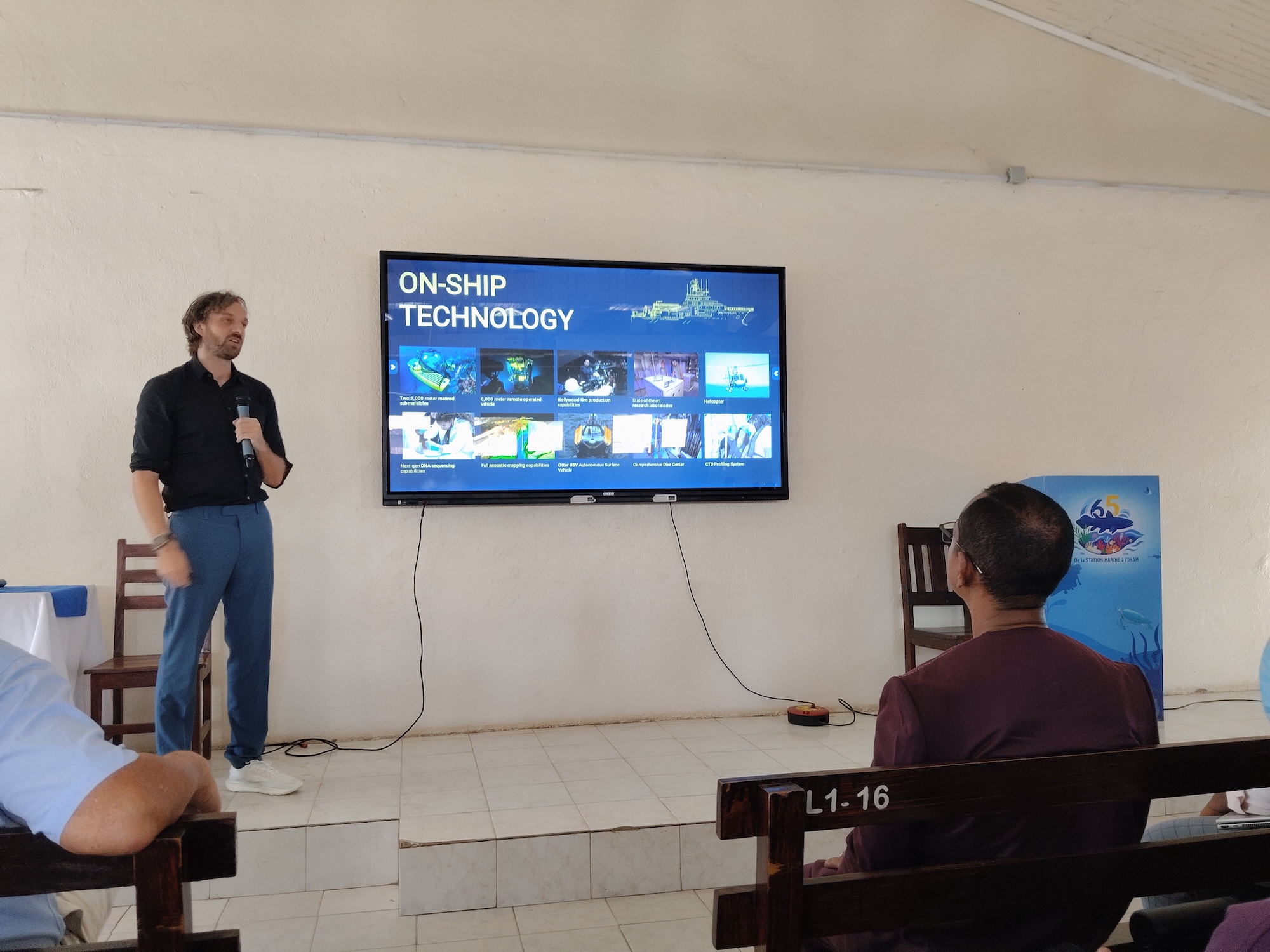 Une attention particulière a été portée aux capacités offertes par le navire OceanXplorer, l’un des bateaux de recherche océanique les plus modernes et plus sophistiqués au monde. Long de 87 mètres, ce navire est équipé de deux sous-marins habités pouvant chacun embarquer trois personnes, dont des chercheurs, jusqu’à environ 1 000 mètres de profondeur, ainsi que de robots sous-marins (ROV) capables d’explorer les grandes profondeurs et d’un hélicoptère pour les études de la megafaune. Il dispose également de laboratoires embarqués de dernière génération, notamment pour l’analyse de l’ADN environnemental (eDNA), et d’un dispositif média dédié à l’éducation et à la diffusion des connaissances scientifiques auprès du public et des décideurs. OceanXplorer s’intéresse surtout aux profondeurs marines, les zones les moins connues de l’océan.