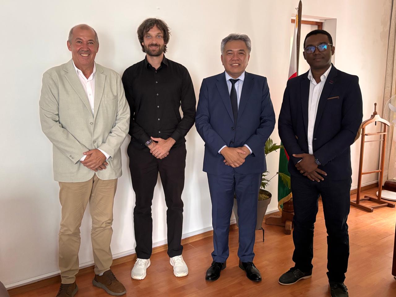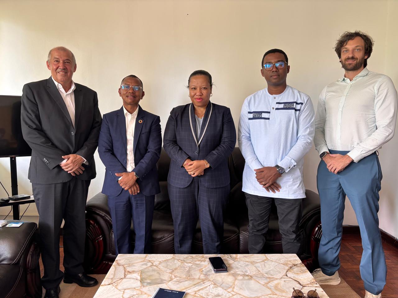 Compte tenu de l’envergure nationale, et du potentiel régional et international, de cette initiative, la visite s’est également traduite par une série de rencontres institutionnelles de haut niveau à Antananarivo. La délégation a été reçue en personne par les ministres de tutelle, notamment le Ministre de l’Enseignement Supérieur et de la Recherche Scientifique, Prof Ravonimanantsoa Ndaohialy Manda-Vy, le Ministère de la Pêche et de l’Économie Bleue, Mr Jaco Chan Kit Wai, ainsi que le Ministère de l’Environnement et du Développement Durable, Mr Michael Manesimana.